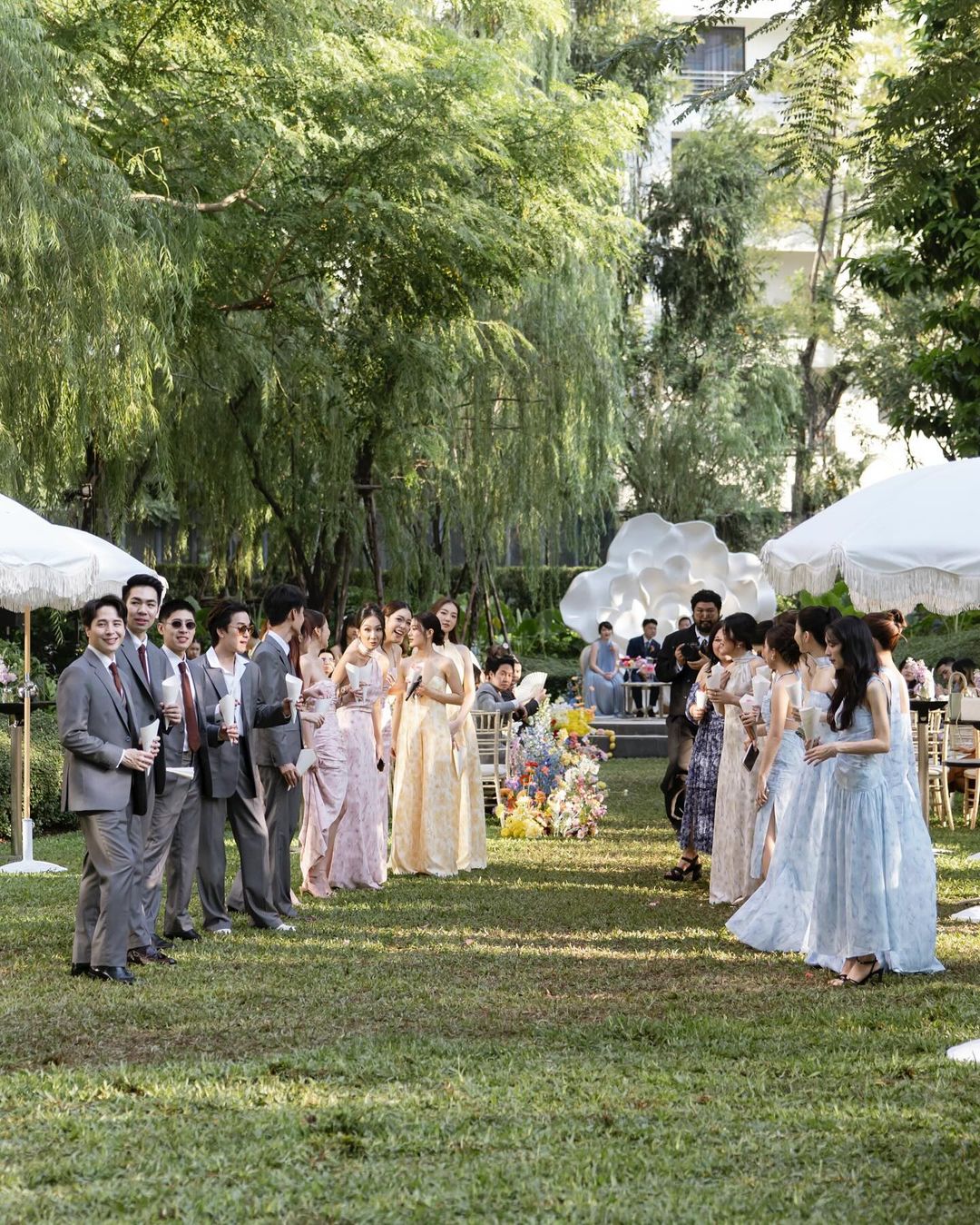 บรรยากาศงานถูกจัดขึ้นแบบเรียบง่ายในสวนสวยสงบเงียบ ณ โรงแรมคิมป์ตัน มาลัย กรุงเทพฯ เนรมิตให้กลายเป็นทุ่งดอกไม้หลากสีสัน พร้อมด้วยครอบครัวและแก๊งเพื่อนทั้งในและนอกวงการ ร่วมอวยพรให้กับอีกหนึ่งแชปเตอร์ของพวกเขา หลังจากที่ร่วมเดินทางและซัปพอร์ตกันทั้งในพาร์ตชีวิต ธุรกิจ และงานบันเทิงมากว่า 7 ปี