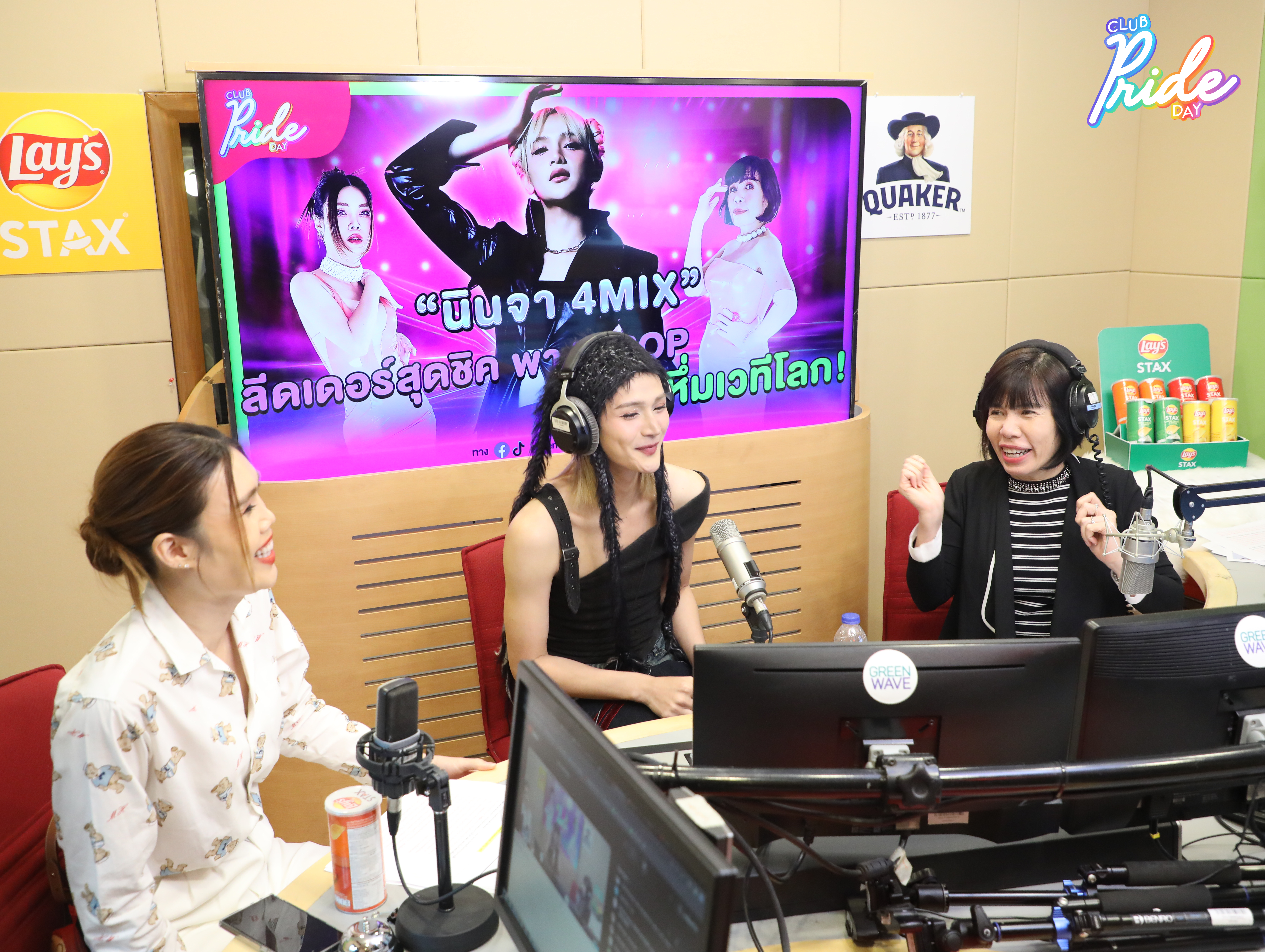 แชร์สีสันของชีวิต แบ่งปันข้อคิดแรงบันดาลใจ ในทุก ๆ สัปดาห์ สำหรับ Club Pride Day คุยอย่าง Proud เมาท์อย่าง Pride กับสองดีเจสุดแซ่บ “ดีเจพี่อ้อย” และ “ดีเจก็อตจิ” ที่ได้เปิดไมค์ต้อนรับ “นินจา จารุกิตต์” ลีดเดอร์ของวง 4MIX ผู้มากความสามารถทั้งด้านการร้อง การเต้น การเป็นดีเจ และมีความทุ่มเทในการก้าวเข้ามาเป็นศิลปินเป็นอย่างมาก พร้อมด้วยการแต่งกายแฟชั่นแบบจัดเต็มที่กล้าเป็นตัวเองอย่างเต็มที่บนเส้นทางของศิลปิน กว่าจะมาถึงวันนี้ เธอผ่านหลากหลายบททดสอบของชีวิต และมีข้อคิดแรงบันดาลใจดี ๆ ที่ได้แชร์เอาไว้ในรายการด้วย