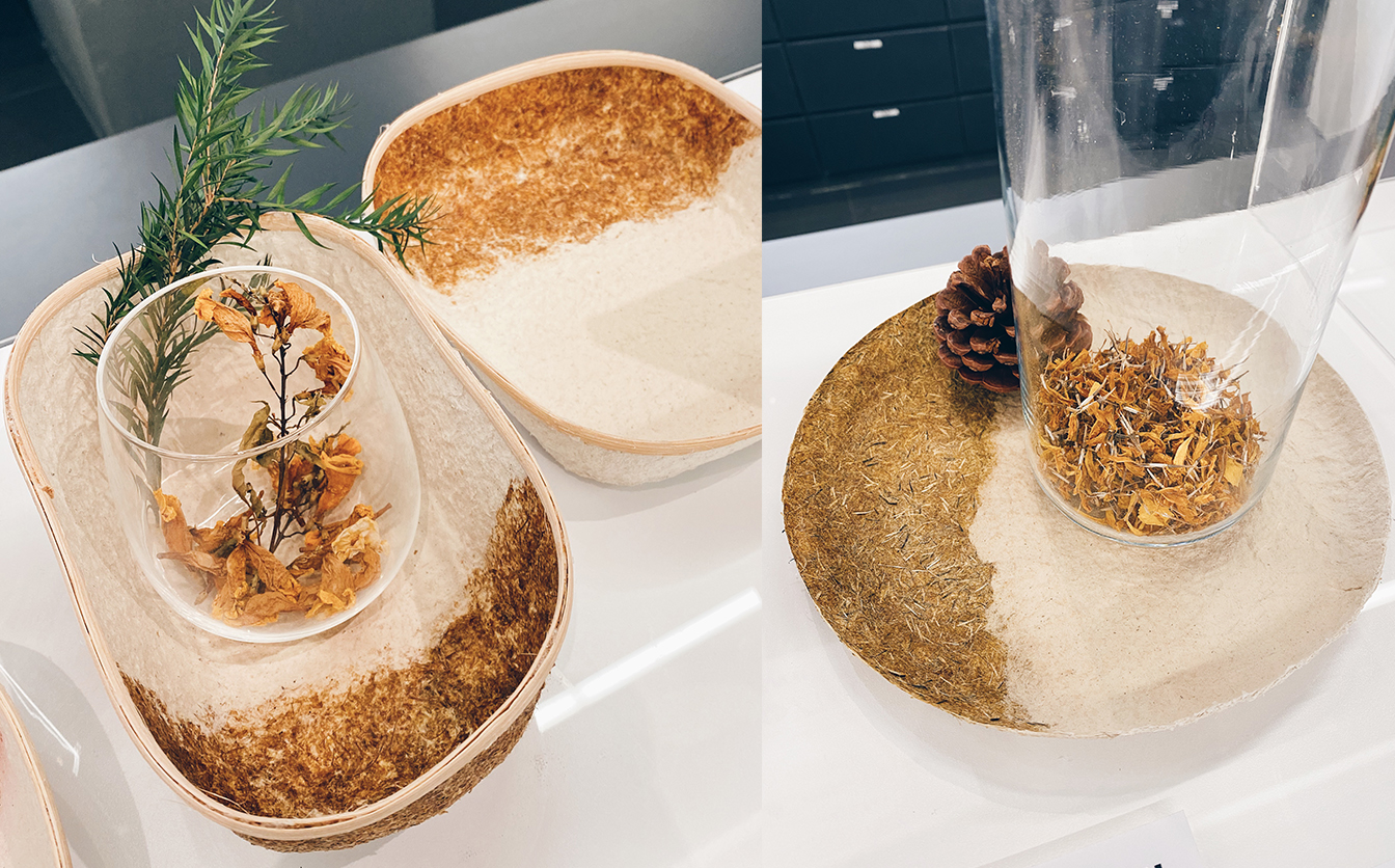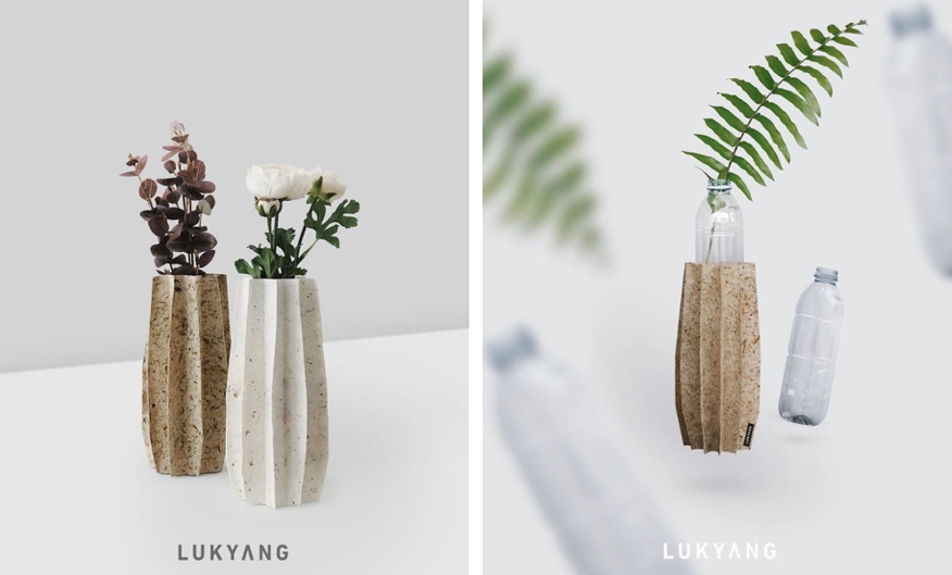 นอกจากที่จัดแสดงอยู่ที่งานแล้ว ทางแบรนด์ยังทำแจกันที่ทำจากขวดพลาสติกเหลือทิ้ง เพื่อชะลอการกำจัดขวดน้ำและส่งเสริมการนำกลับมาใช้ใหม่ สีขาวและสีน้ำตาลอ่อนแบบนี้แอดว่าคลุมโทนมากเลยนะคะ เอาไปตั้งตกแต่งมุมโต๊ะทำงาน โต๊ะทานข้าว หรือมุมต่าง ๆ ของบ้านก็เก๋ค่ะ